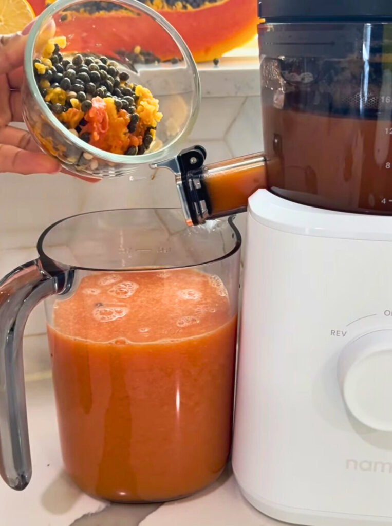 • Optional: a few papaya seeds, for topping or post-juice nibble