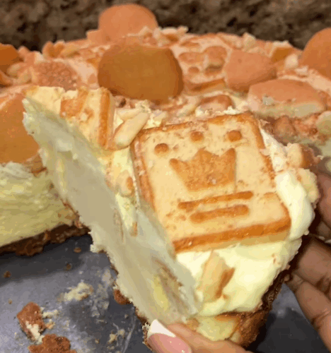 - Once the cheesecake is fully cooled, spread the banana pudding on top.