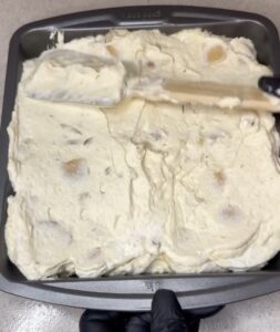 - Transfer the mixture into a loaf pan or freezer-safe container.