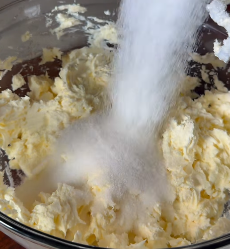 - Add ½ cup Biscoff cookie butter and ½ cup sour cream.
