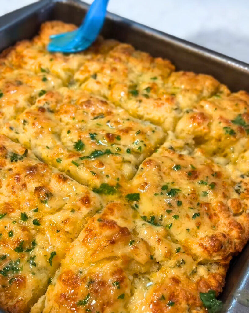If Red Lobster made you fall in love with Cheddar Bay biscuits, this homemade remix by Adrienne Wilson of @cooknwith.adri will have you swimming in flavor. These Butter Swim Biscuits are soft, cheesy, and infused with garlic-herb butter that soaks into every golden square. The base? A simple drop biscuit dough rich with cheddar and fresh herbs, baked right in a pool of melted butter.