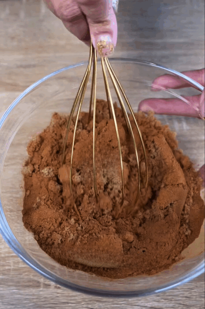 • In a small bowl, mix together the brown sugar and cinnamon.