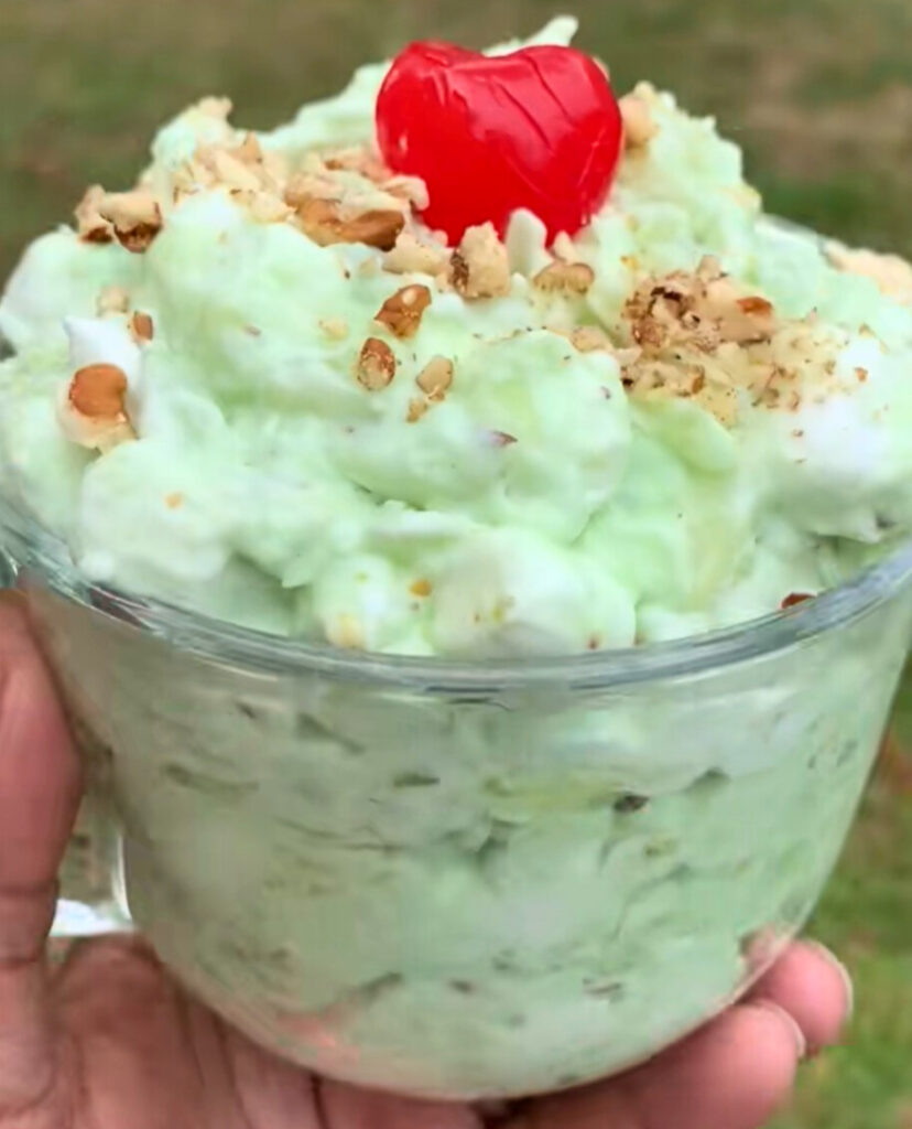 This Southern favorite is perfect for potlucks, holiday tables, or whenever you need a simple, crowd-pleasing dessert. Topped with crushed pistachios and a cherry, it’s a fun, flavorful, and nostalgic dessert that brings sweetness and crunch to every bite!