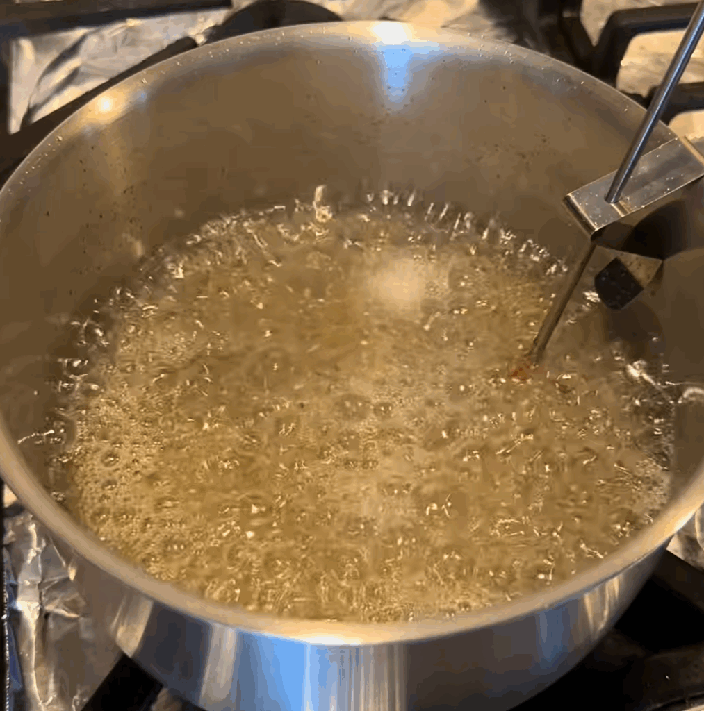 - Allow the syrup to simmer until it thickens into a candy-like consistency.