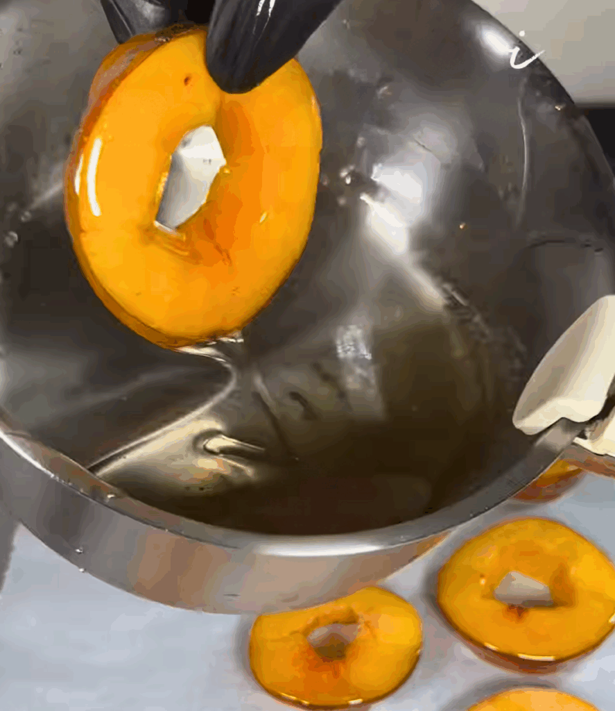 - Add a few drops of peach extract or food coloring for authentic flavor and look.