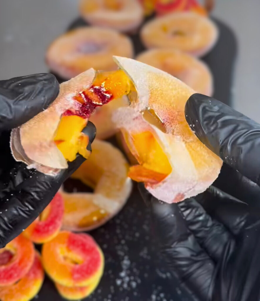 - Roll the cooled peach rings in extra sugar for that classic candy-store finish.