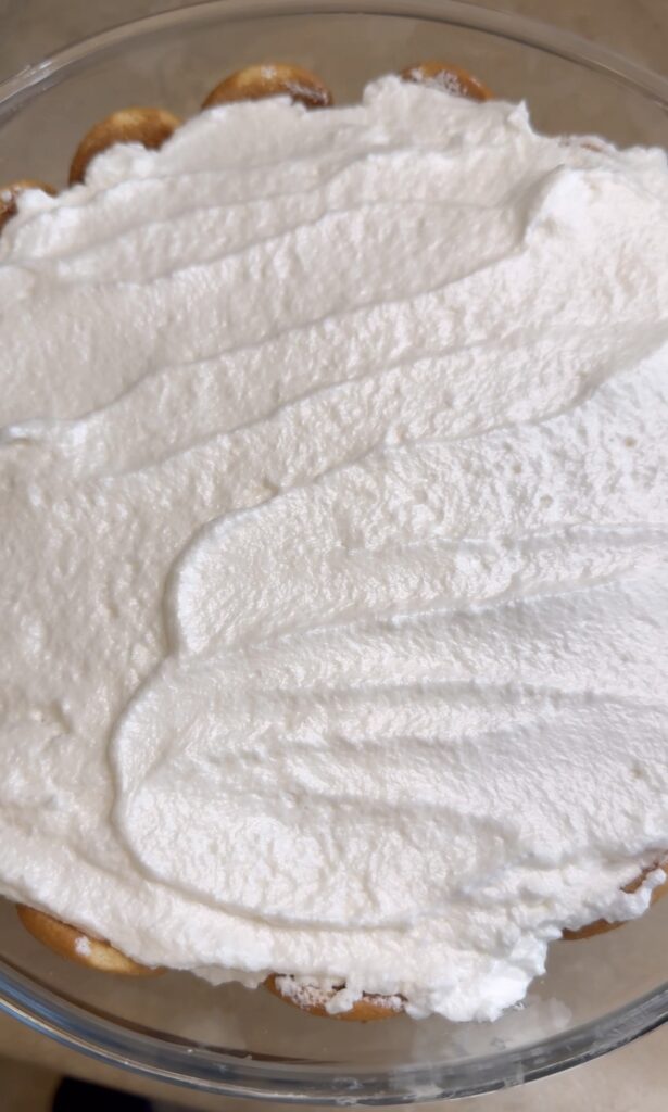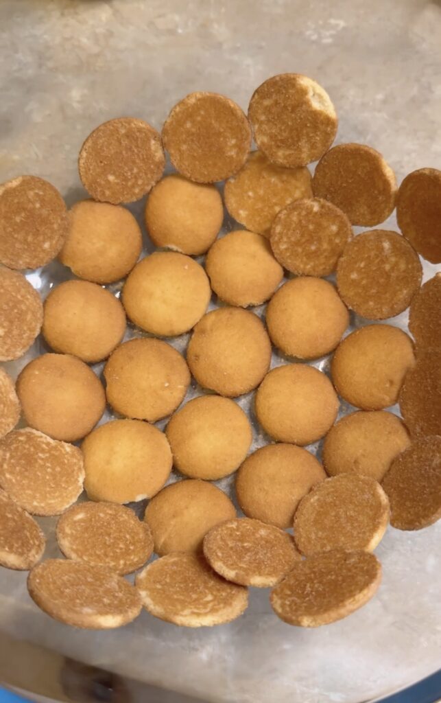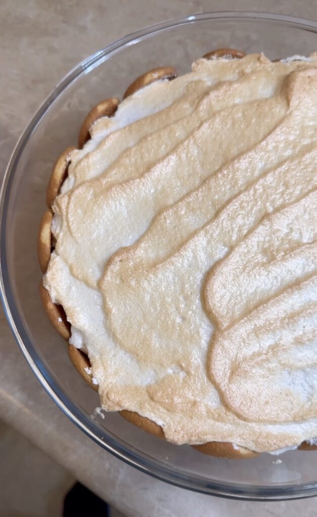 Banana pudding in the glass bowl with Nilla wafers visible — credit: @Cookupki via Black Foodie Finder)