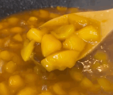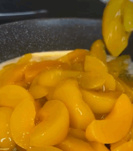 - Add canned peaches, white and brown sugar, vanilla extract, and salted caramel sugar.