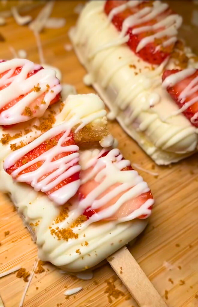 These Strawberry Cheesecake Popsicles are what happens when dessert gets bold, creamy, and extra. Created by Chef Akayy, this frozen treat is stacked with chunks of real cheesecake, juicy strawberries, fluffy yellow cake, and a coat of white chocolate that brings the whole thing together. It’s part popsicle, part deconstructed strawberry shortcake, and fully addictive.