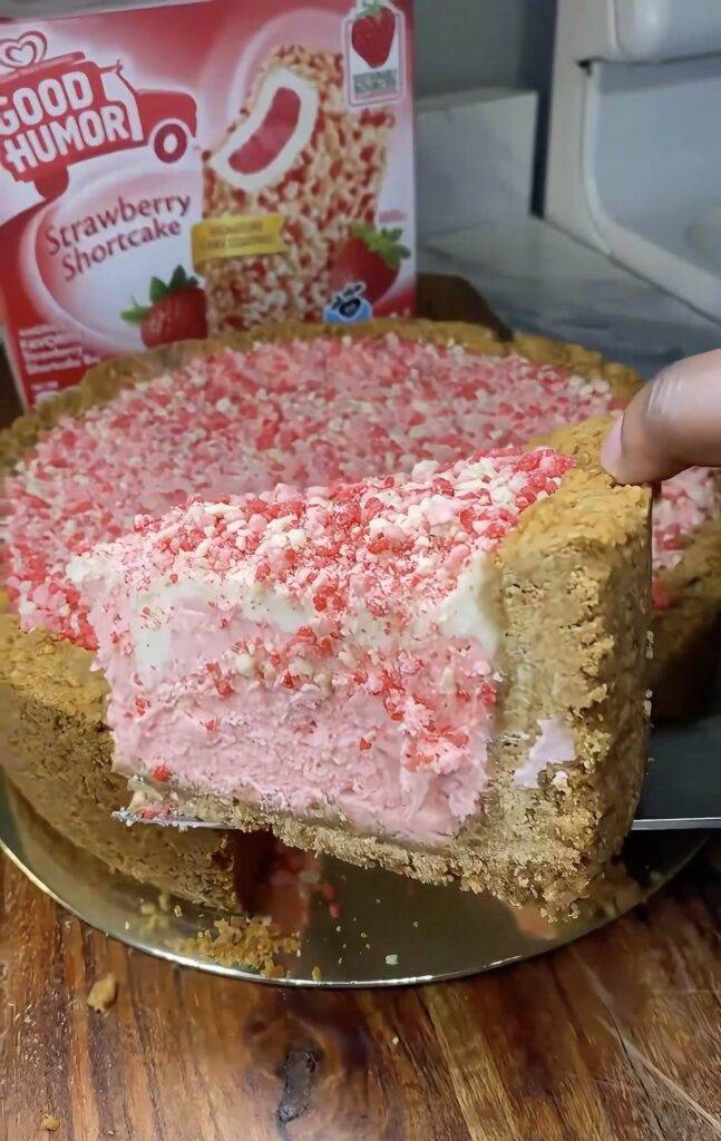 And let’s be real—it’s that crunch topping that steals the show. We cracked the code: it’s made with Golden Oreos, white chocolate, and strawberry Jell-O powder, blended separately to create a signature red-and-vanilla crunch combo. This isn’t just a dessert—it’s a vibe.