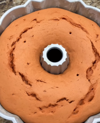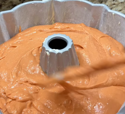 - Pour the batter into the Bundt pan.
