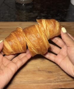 While the bake finishes, melt the butter and stir in the honey. Once you remove the dish from the oven, brush the tops of the croissants with the honey butter for a glossy, sweet finish.