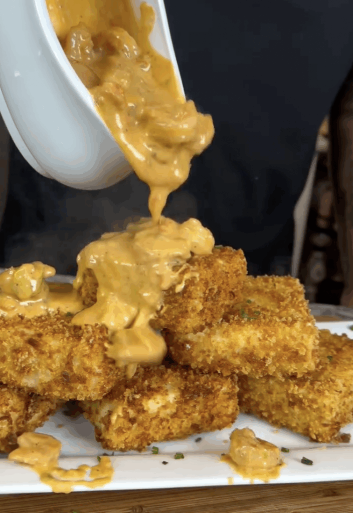 When crispy fried grits meet creamy garlic shrimp, you’re not just eating—you’re experiencing a Southern flavor bomb that blends texture, richness, and heat in every bite. This recipe from @eatwitzo takes the beloved comfort of cheesy grits and transforms them into golden, crunchy blocks topped with a luscious shrimp sauce that’s straight out of a dream.