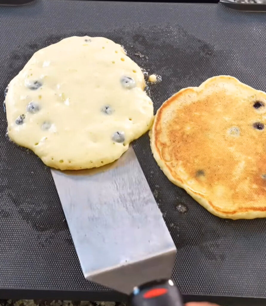 • Scoop ⅓ cup of batter onto your hot griddle or pan, giving each pancake space.