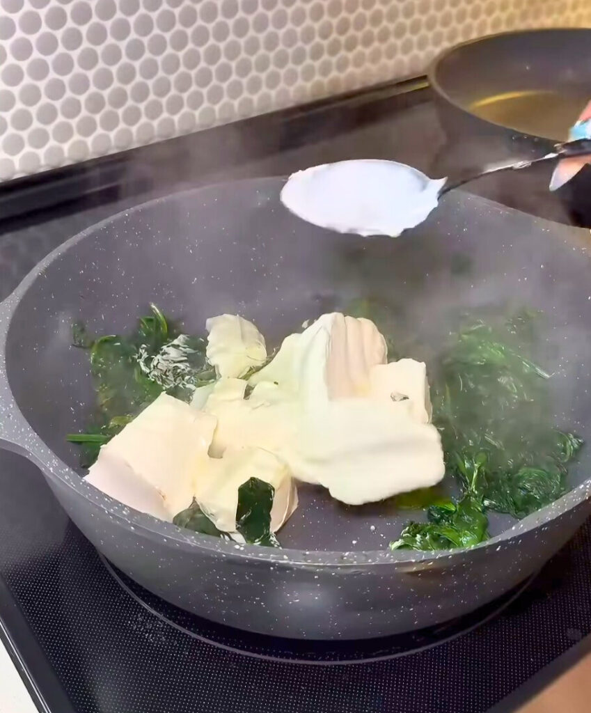 - If using fresh spinach, sauté in a pan until wilted, then chop finely.