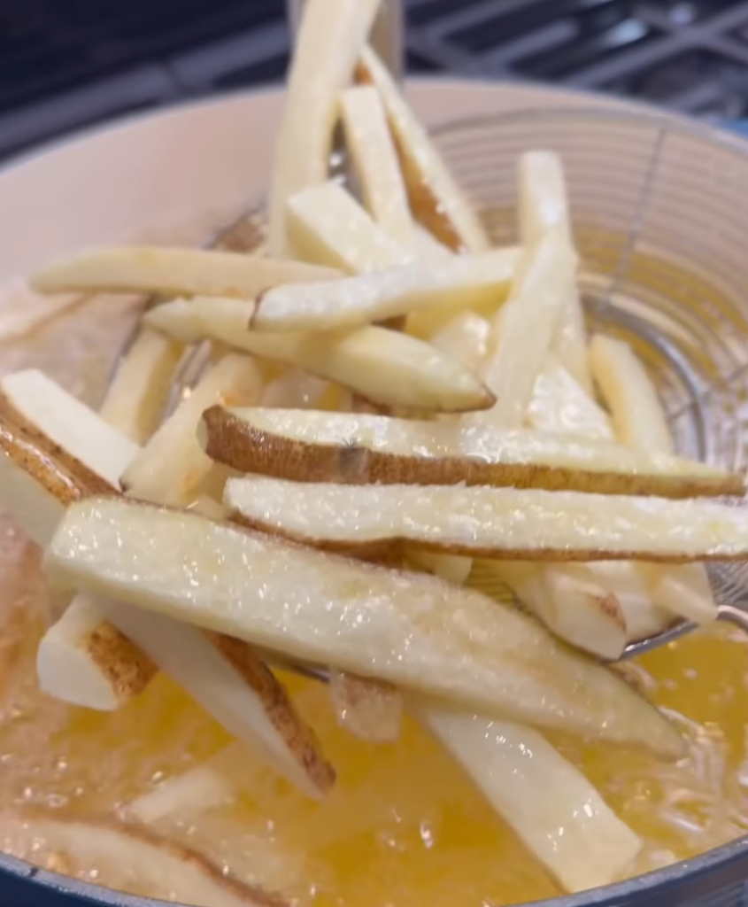 - Double-fry for best texture—first to soften, second to crisp and brown.