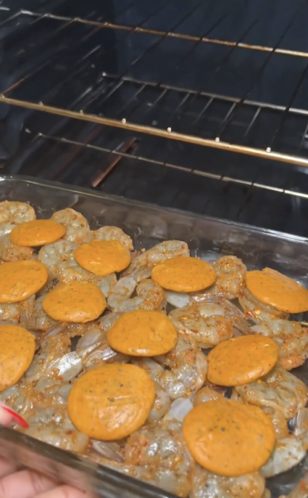 • Spread shrimp on a baking sheet, top with garlic butter, and bake at 400°F for 10 minutes.