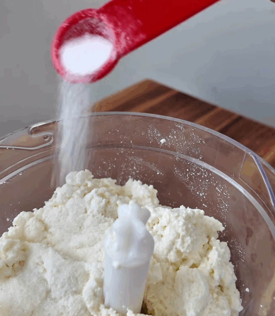 Transfer the curds into a food processor or blender. Add a pinch of salt and blend until smooth and creamy. Adjust salt to taste.