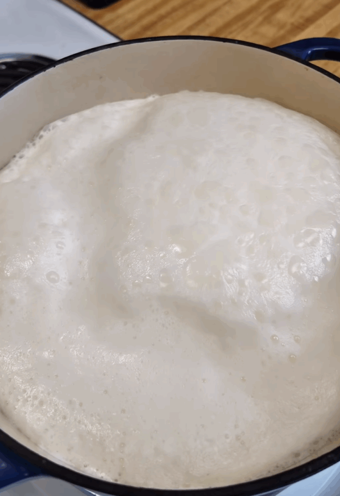 Slowly stir in the fresh lemon juice. Keep stirring for 1–2 minutes until the milk begins to curdle and separate into curds and whey. Remove from heat and let it sit for about 10 minutes.