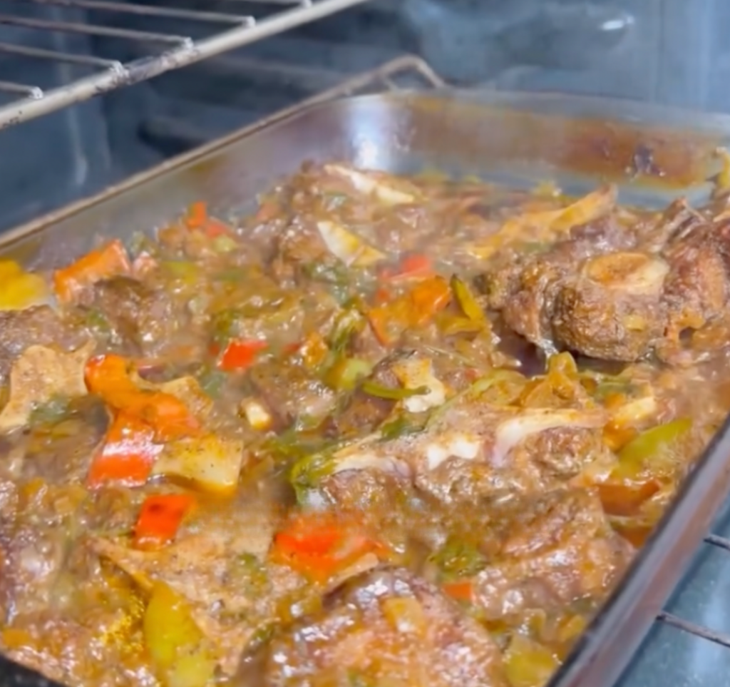 @atasteofmichelle shares her Dominican-style baked oxtails, layered with sofrito, garlic paste, herbs, and a splash of dark liquor for richness. With bold seasonings, fresh veggies, and a slow roast in the oven, these oxtails are perfect for Sunday dinner, or any day you want comfort on a plate.