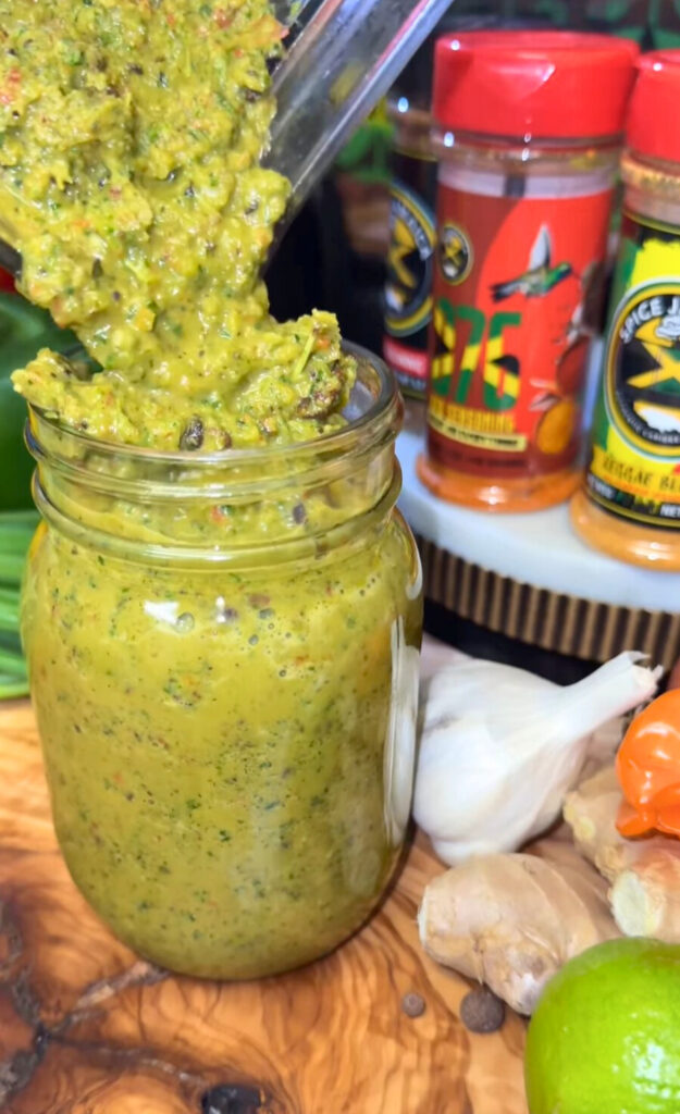 Aldaine Oakley of @spicejamaica shares his take on this essential Jamaican kitchen staple. Made with fresh thyme, scallions, ginger, garlic, and a hint of lime, this blend delivers that unmistakable island taste—fiery, herbaceous, and soul-deep. You’ll never cook the same again after trying it.