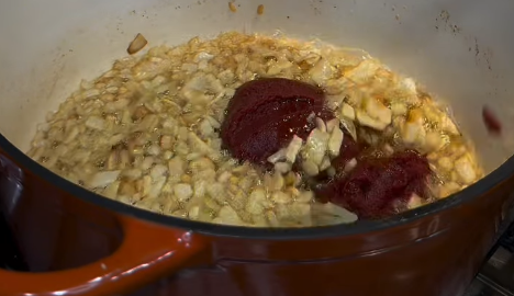- Add the tomato mixture, reserved broth, and extra water if needed.
