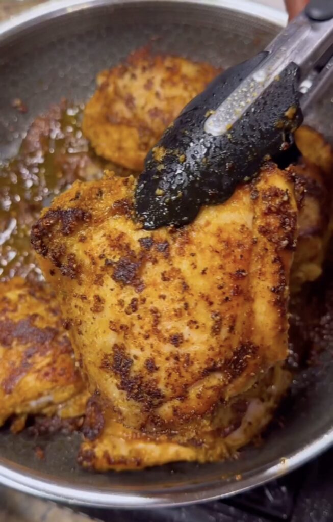 In a large skillet over medium-high heat, add a drizzle of olive oil. Sear chicken thighs skin-side down for 6-8 minutes per side until golden brown. Remove from skillet and set aside.
