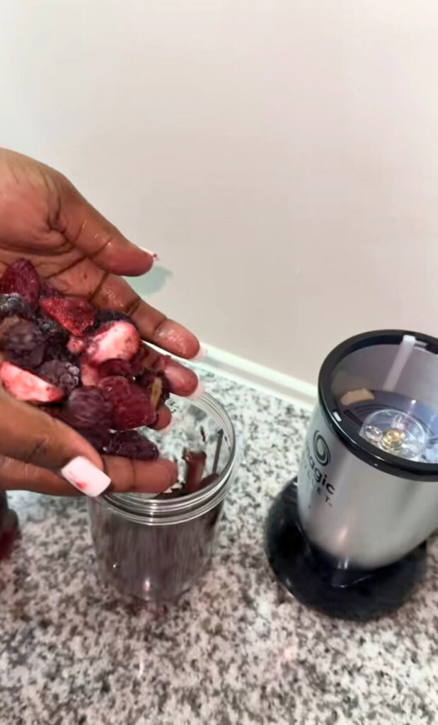 - If the mix is too thick, add more juice a little at a time. If it’s too runny, throw in a few more frozen berries to thicken it back up.