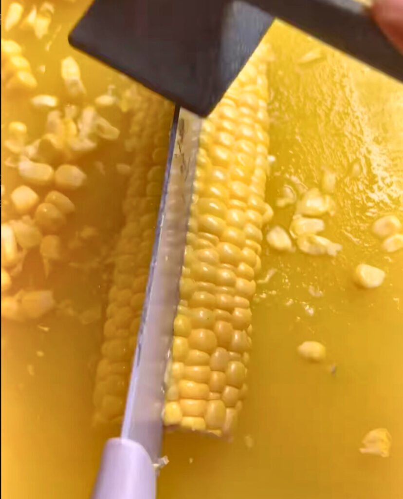 - Carefully cut each corn cob into quarters lengthwise. This forms the “ribs.”