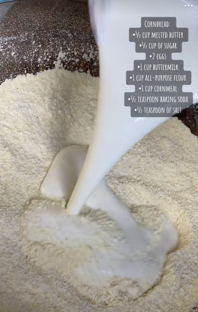 • In a medium mixing bowl, combine cornmeal, flour, sugar, baking soda, and salt.