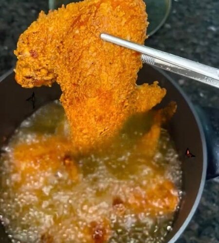 Carefully drop the coated wings into the hot oil. Fry for 10–12 minutes, turning halfway through, until crispy and golden brown. The internal temperature should reach 165°F.
