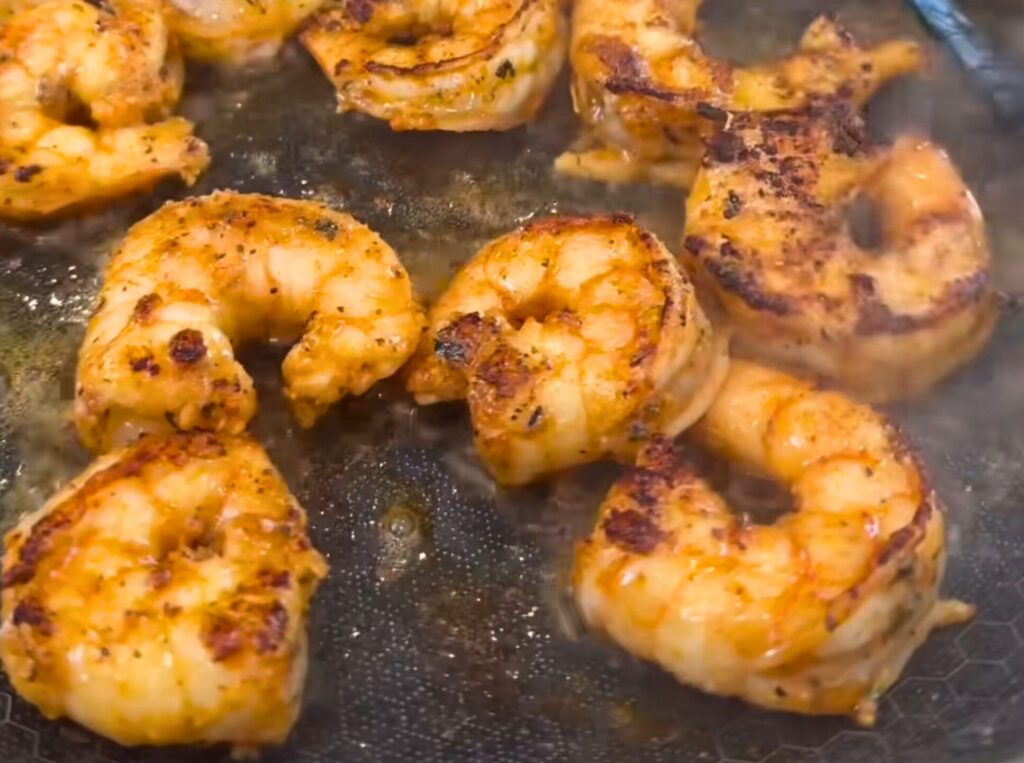 - Add shrimp to the skillet and cook until pink and fully cooked.