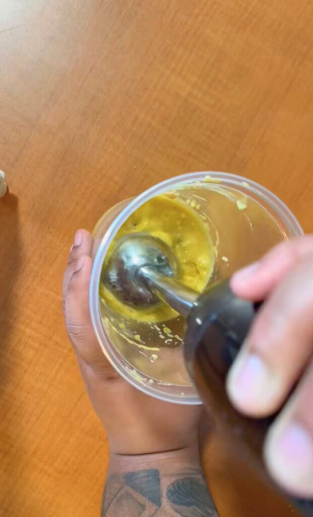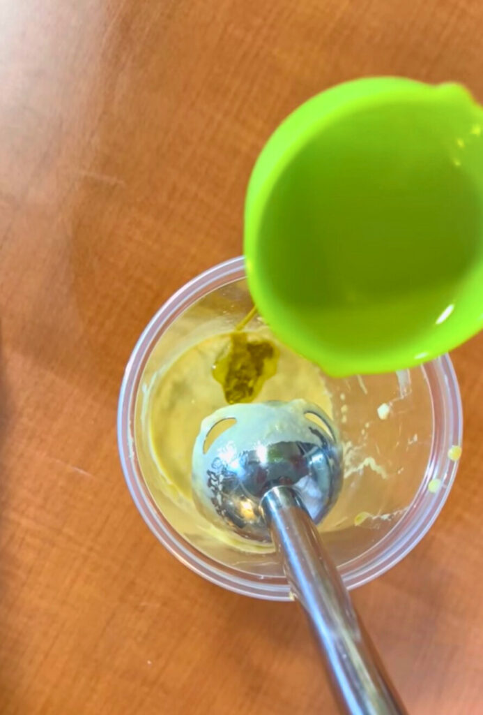 - In a mixing bowl (or the cup that comes with your immersion blender), add: