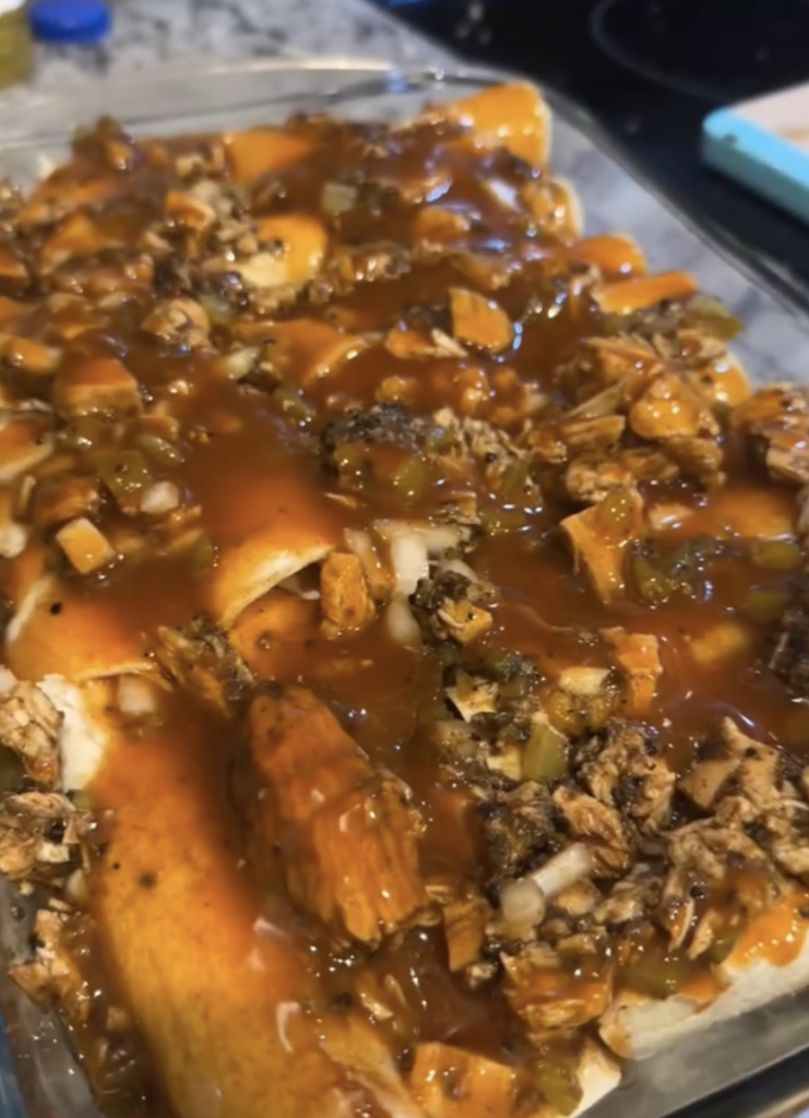 It’s the bold fusion you didn’t know you needed: sweet heat from the jerk, zesty enchilada sauce, and an option to turn it up with jalapeños. Whether you’re cooking for one or making it a vibe for dinner with friends, this dish brings flavor, texture, and heat in all the right ways.