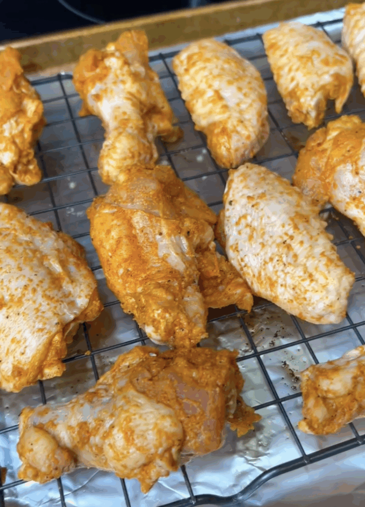 - Season wings with adobo, Tony’s Creole, onion powder, garlic powder, and paprika.