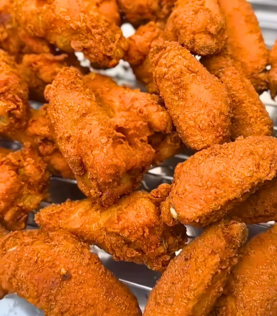 - Set the coated wings on a wire rack or tray to rest for 5–10 minutes before frying. This helps the crust develop.