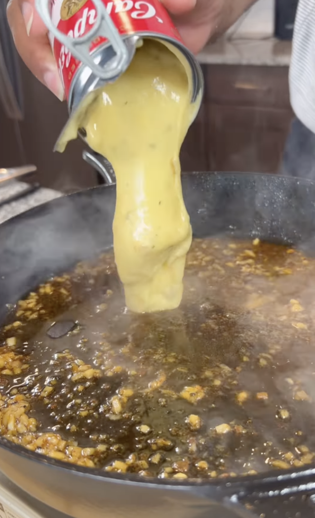 In the same skillet you used for the chicken, lower the heat to medium and add a bit more butter if needed. Toss in minced garlic and let it sauté until fragrant. Then, deglaze the pan with a splash of chicken stock—this helps lift all the flavorful bits stuck to the bottom of the pan, infusing your sauce with even more taste. Next, stir in the cream of chicken soup and heavy cream, blending them until smooth and silky.