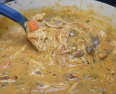 - Add the shredded chicken back into the pot, give it a good stir.