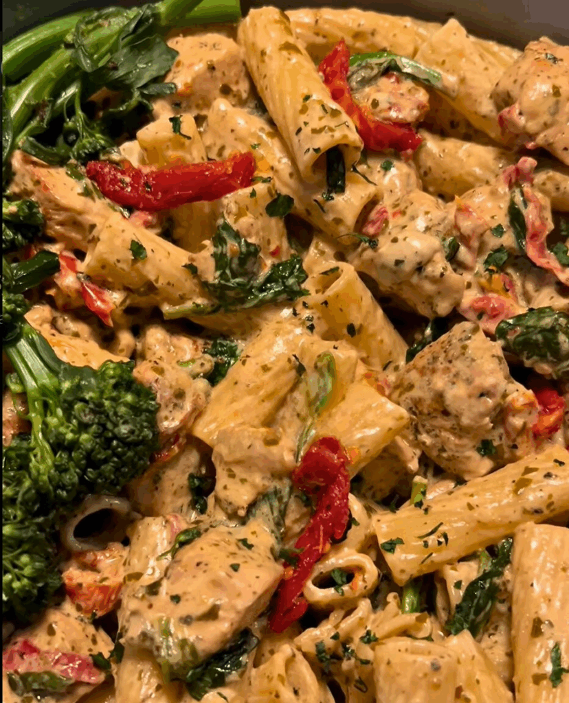 Looking for a pasta dish that hits every craving? This Creamy Chicken Pesto Rigatoni is everything—savory, herby, rich, and totally satisfying. Juicy pan-seared chicken, tender rigatoni, and a velvety pesto cream sauce come together with sun-dried tomatoes and baby spinach for the perfect weeknight dinner or cozy Sunday meal.
