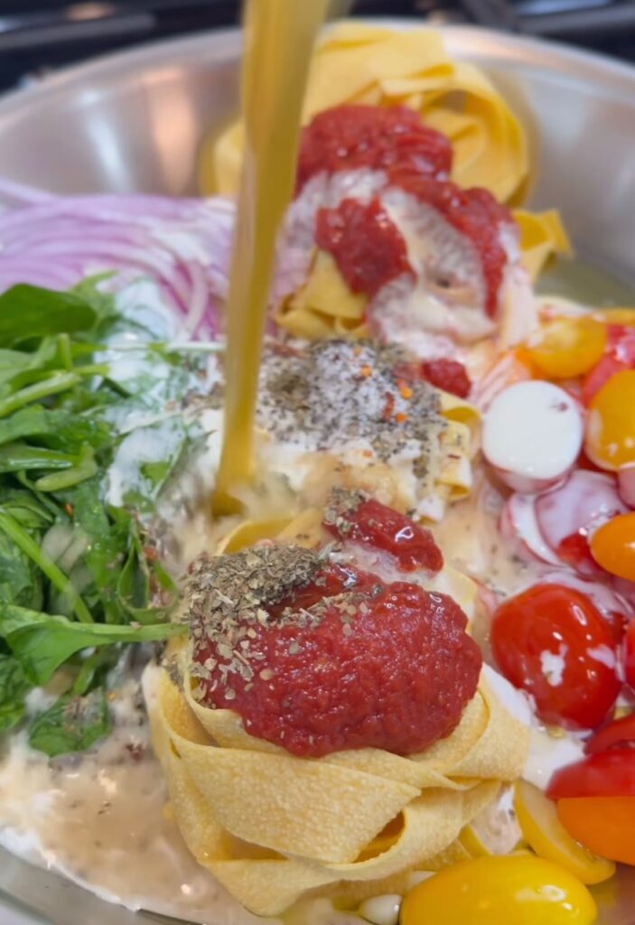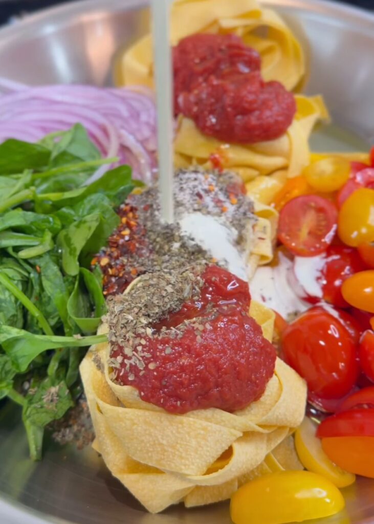 Fresh cherry tomatoes, red onion, and spinach bring color and vibrancy, while a creamy tomato base infused with garlic, oregano, and basil wraps every bite in rich, velvety flavor. Whether you use plant-based cream for a dairy-free twist or go classic with heavy cream, this recipe guarantees a luscious sauce that feels both wholesome and indulgent.