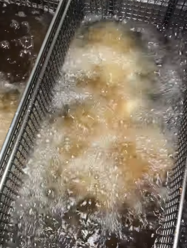 - Heat oil to 350°F in a deep fryer or large, heavy pot