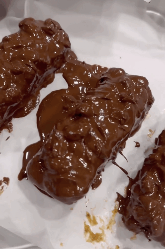 - Pour melted chocolate over the top, spread evenly, and place in the fridge or freezer for 15–30 minutes until set.