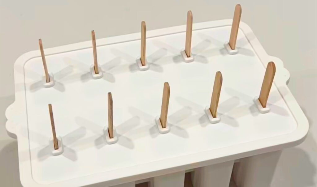 - Insert sticks into the mold and secure the lid.