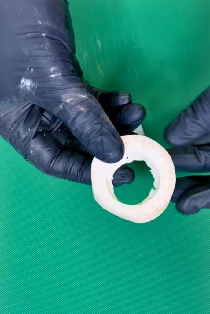 - Use a straw or small cutter to punch a hole in the middle of each slice to create “calamari” rings.