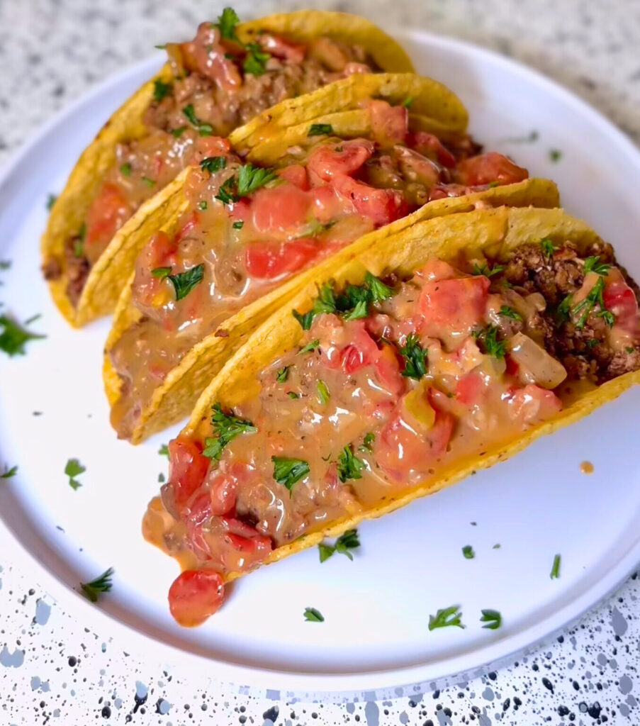 Taco Tuesday just got a glow-up. These Vegan Rotel Tacos by @prettybrownvegan are the definition of flavor-forward comfort. A nutty, smoky pecan-mushroom “meat” meets a creamy, coconut-based Rotel queso that will have even meat lovers doing a double take.