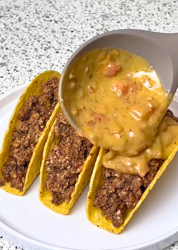 - Spoon over the hot vegan Rotel queso.