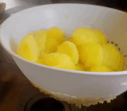 - Drain the potatoes, then shake them in the colander to rough up the edges.