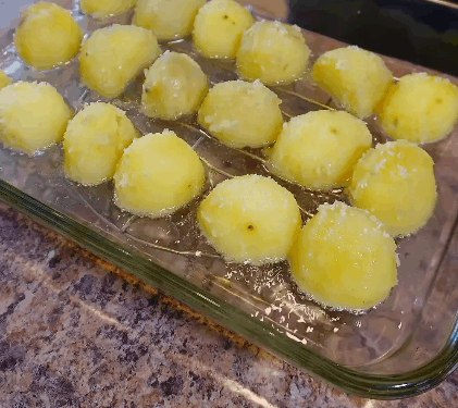- Place them in a large pot with water, a generous pinch of salt, and 1 tsp baking soda (this creates a rough surface for maximum crispiness).
