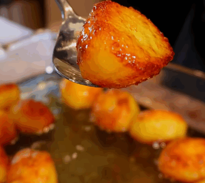 - Once golden and crispy, toss the hot potatoes in the garlic herb butter until coated.