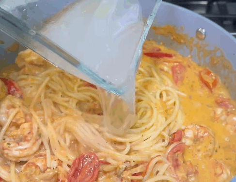 Toss pasta directly into the shrimp bisque sauce; stir in a splash of pasta water and loads of Parmesan.